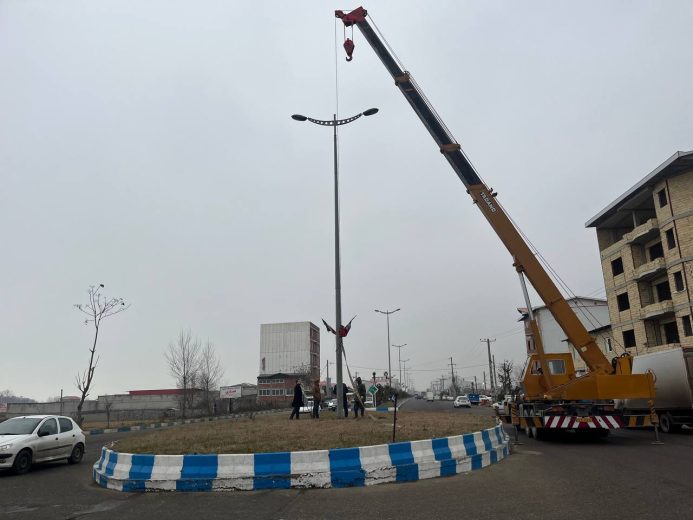 شروع عملیات نصب المان نوری در میدان امام خمینی (ره) لوندویل